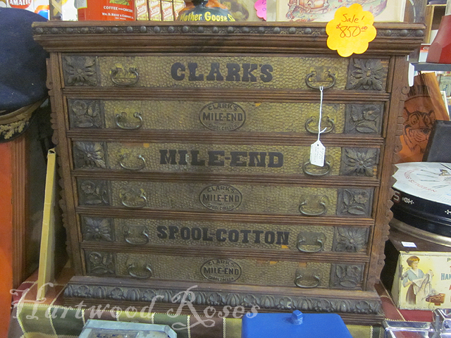 I need some inspiration for a paint project that I have planned, and I found some antique thread cabinets that had really wonderful graphics.