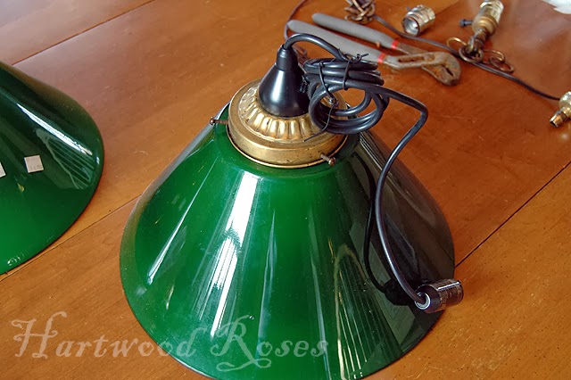 Part of this process involved converting three vintage light fixtures into pendants that would clip onto the lighting track.  This turned out to be an incredibly simple process, and the results are so unique.