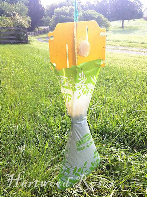 Edited to add:  As soon as I finished this post and hit 'publish', I went down to the garage to get a replacement bag for this beetle trap, only to discover that I was out of them.  Since I had to leave home and go to town for replacement bags, I decided that I might as well take my shopping list with  me and combine trips.  Left home at about 11:30, returned just before 3:00.  By that time, the existing bag on the trap was full to the point of overflowing.